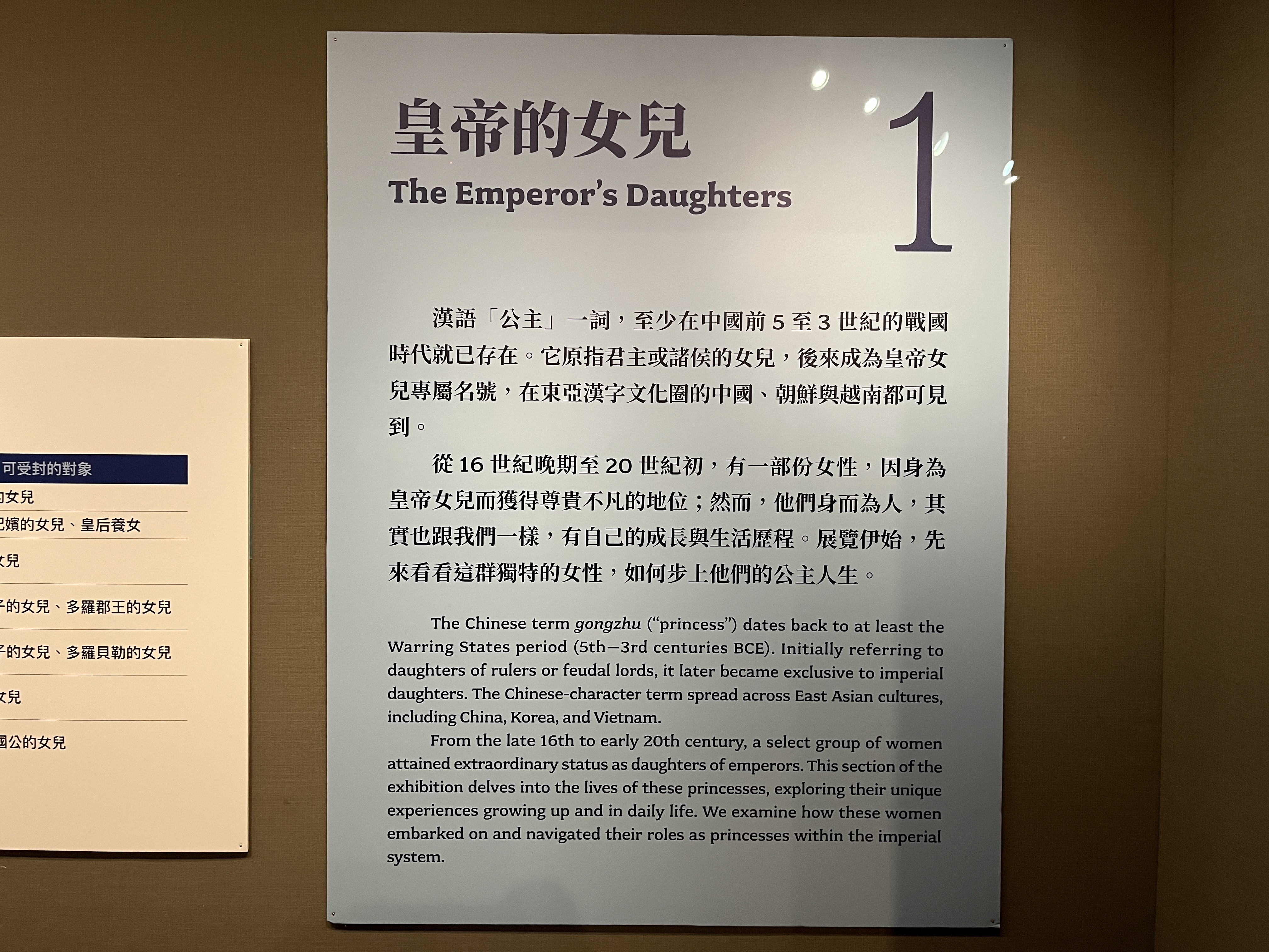 그렇다면, 청나라의 공주는 어떤 존재였을까? 본 전시를 제대로 감상하기 전, 머리를 촉촉하게 만들 수 있는 '7가지 문답'이 전시실 우측 진입 첫 번째 전시벽에 나와있어 소개합니다.