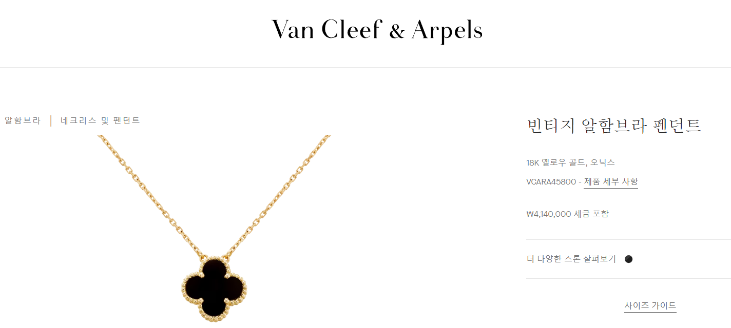 두 번째 주인공은 무려 세계적인 명품 브랜드 반 클리프 아펠입니다. 고궁박물관이 내년 100주년 맞이해서 아주 작심을 하고 기획했구나, 하는 생각이 들었죠. 1896년에 창립된 브랜드로서, 보석, 시계, 향수 등을 취급하고 있는 회사인데요. 반클리프 하면 바로 떠오르는 '검정 네 잎클로버 디자인 목걸이', 바로 알함브라 라인입니다.