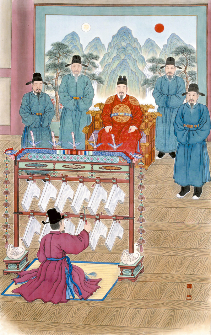 제왕(帝王)은 예악(禮樂)을 바로 세우는 자로서 천명을 받고 통치한다고 여겼습니다. 그래서 왕은 반드시 음악을 주재해야 했고, 이를 통해 신과 백성 사이를 매개했습니다.