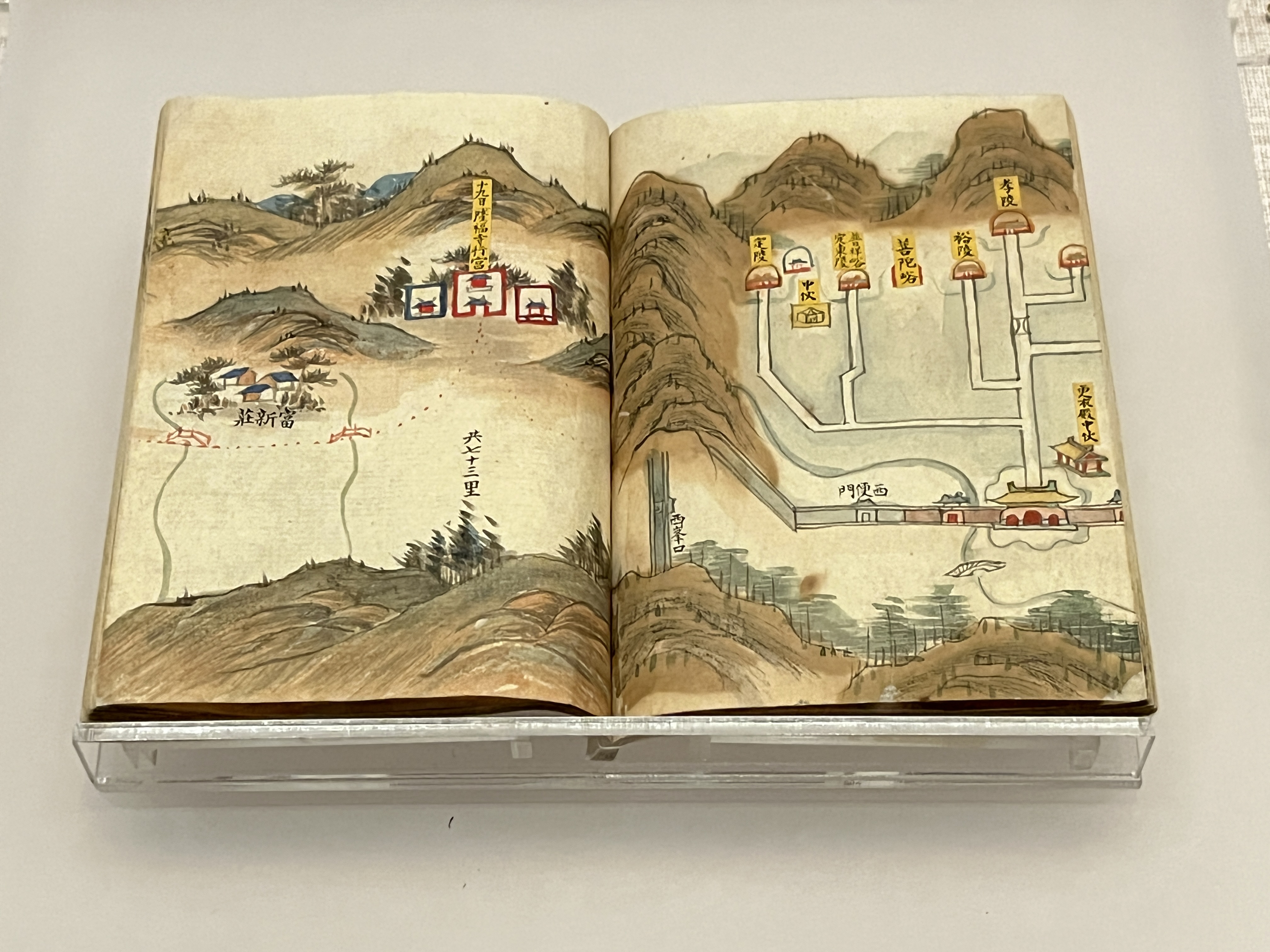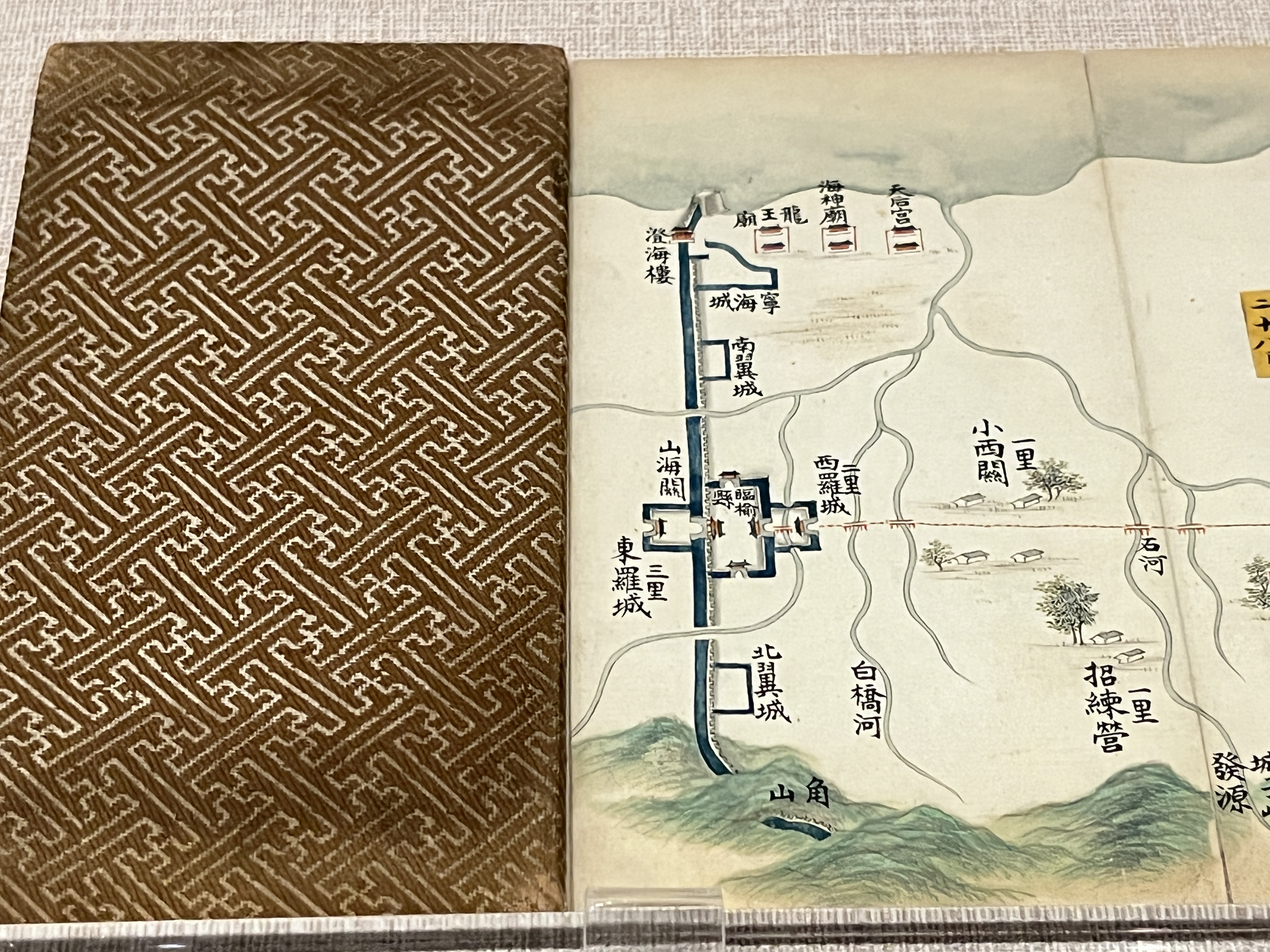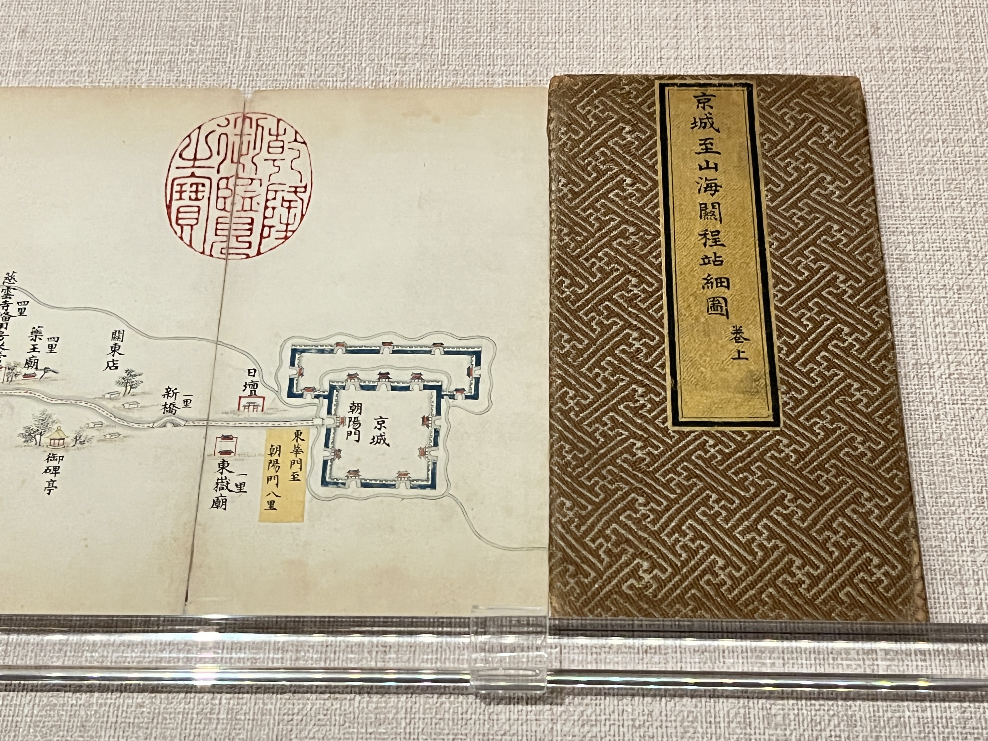 북경에서 산해관까지의 10일간의 여정동안 필요한 지도를 작은 책자 안에 그려놓은 것인데요. 산해관이 대체 어디냐? 고 묻는다면 만리장성의 동쪽 끝입니다. 그 거리가 300km 정도 되니, 현재 자가용으로 가면 약 세 시간 반, 도보로 이동시 하루에 30km씩 걷는다고 가정했을 때 열흘이 걸리는 겁니다.