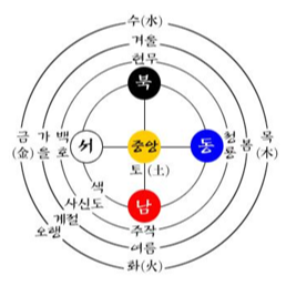 | 수水 | 북쪽 | 흑黑 | 겨울 | 현무 |