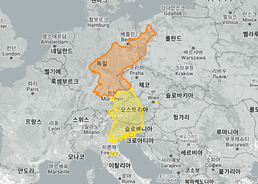 재미있는 사이트가 하나 있는데요, thetruesize.com에 들어가 보시면 각 나라 영토의 실제 크기를 볼 수 있습니다. 한반도를 유럽대륙에 옮겨보니 폴란드와 독일, 오스트리아, 슬로베니아, 이탈리아까지 걸쳐져 있는 보습을 확인할 수 있습니다.
