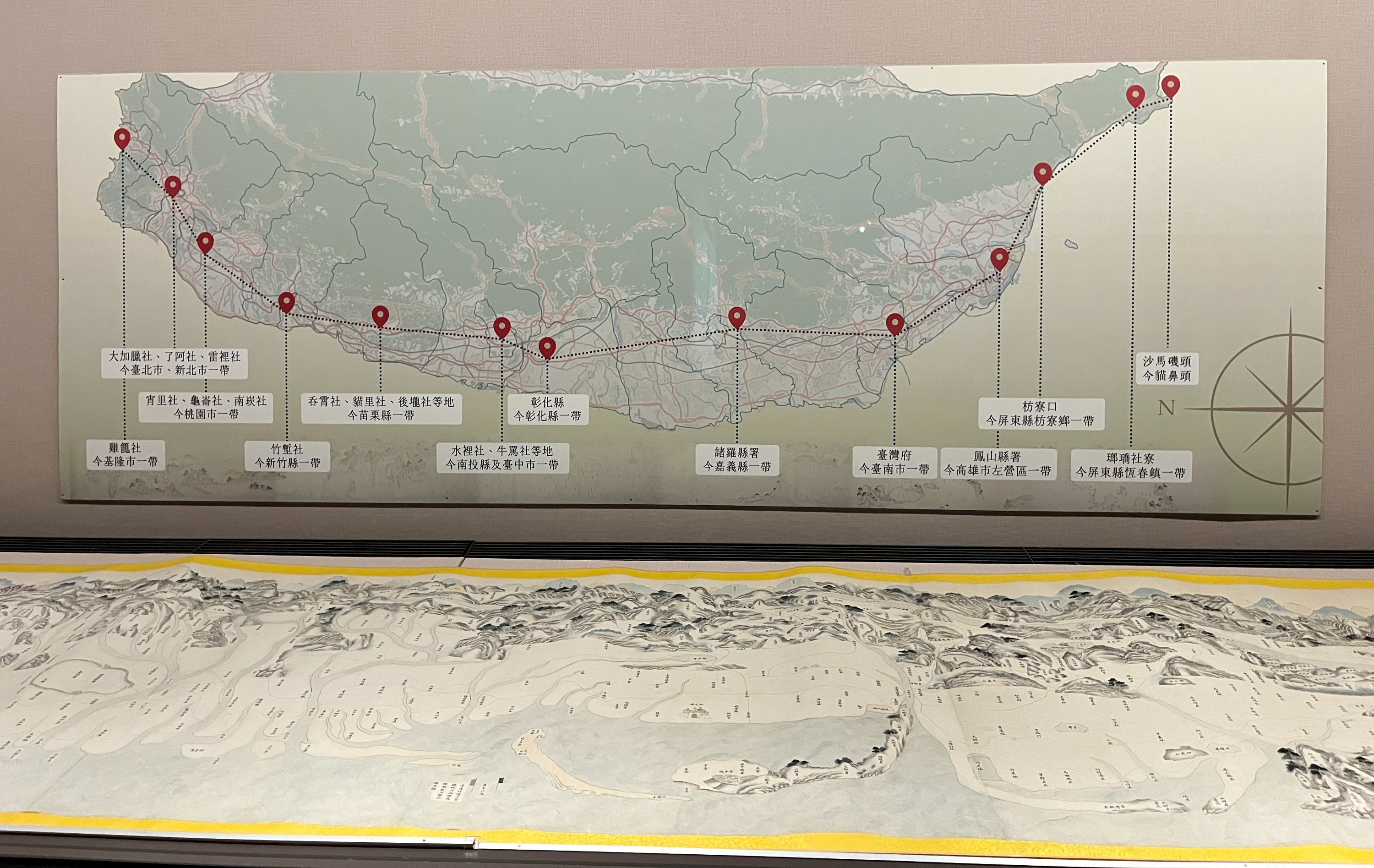 대만국립고궁박물원도 특별전을 선보일 때마다 관람객이 직접 체험해 볼 수 있는 설비들을 계속해서 추가하고 있는 추세인데요. 이번 전시에서는 작은 화면을 좌우로 움직여보면 옛 문헌 속 지도의 장면이 함께 이동하며 대만섬의 북쪽에서 남쪽까지 옛 지명들과 함께 그 위치가 표시됩니다. (어린아이들이 좋아할 것 같습니다.)