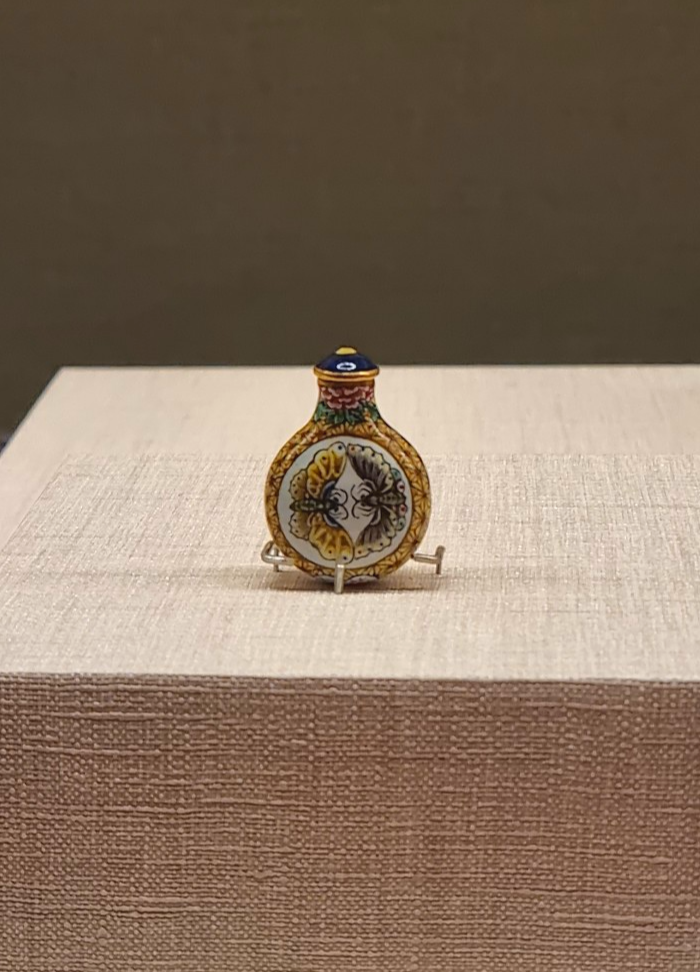 또한 당시 귀족사회의 풍속을 알 수 있는 물건도 있는데요. 바로 코담배병입니다. 사진 속 유물은 법랑채 기법이 쓰였는데, 법랑이란 구리 바탕 위에 유리질의 유약을 칠한 것으로서 청 강희연간에 서역에서 수입해 온 기술입니다. 고궁박물관에는 로코코 Rococo풍의 소장품을 3층 300호 기획전시실에서 만나보실 수 있는데, 여기에는 유럽풍의 더욱 화려한 코담배병도 함께 보실 수 있으니 비교해서 보시는 것도 좋겠습니다.