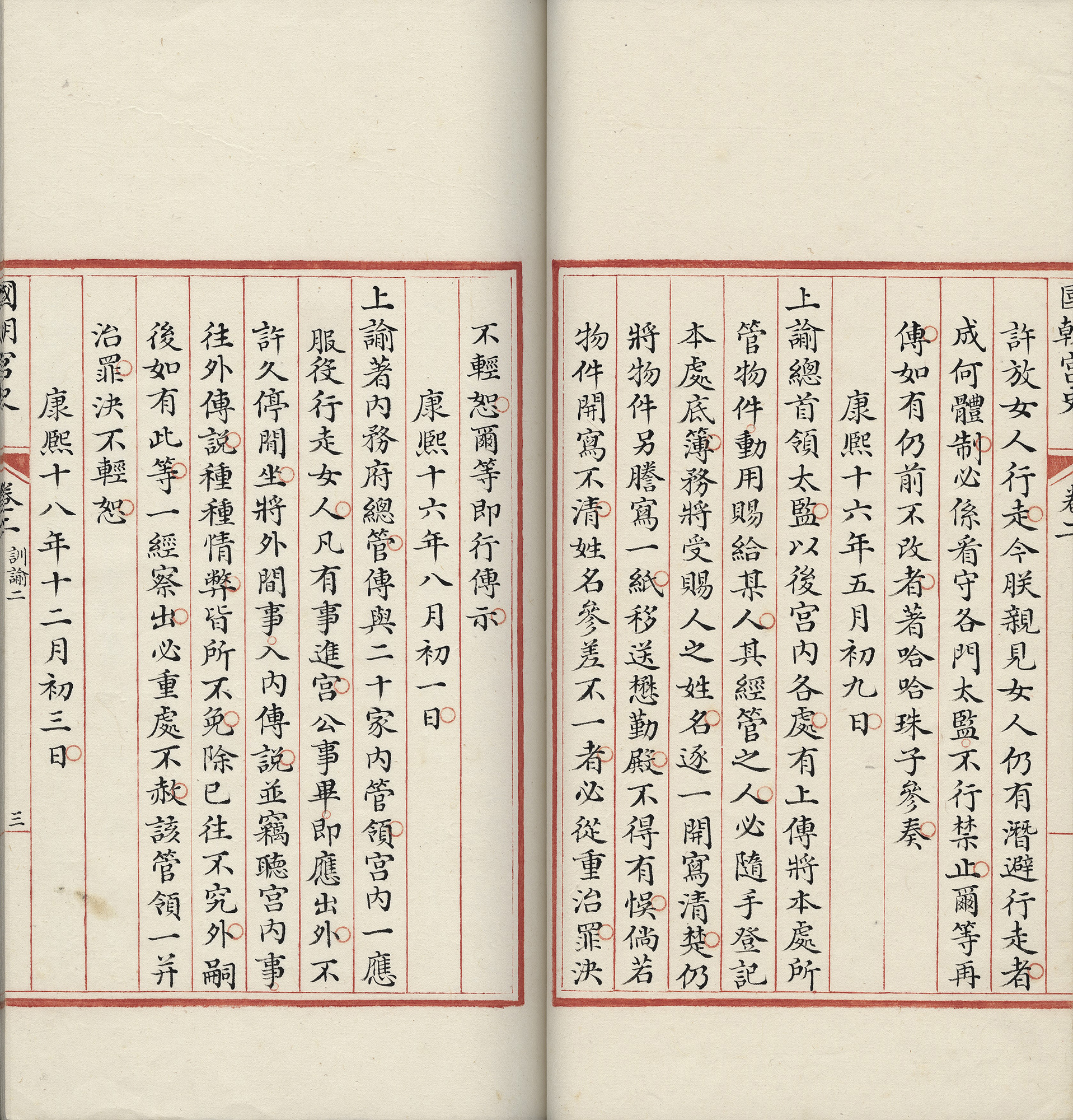 다른 하사품도 추가로 보시겠습니다. 궁중 각처에서 포상이 이루어질 경우 이를 담당하는 자는 반드시 즉시 기록을 남겨야 하며, 수혜자의 이름과 시점을 명확히 기재해야 했습니다. 만약 기재 내용이 사실과 다를 경우, 엄중하게 처벌하도록 되어 있었습니다. 건륭제 통치시기 대학사에게 하사된 포상품에는 "여의如意 한 자루, 영주寧紬 비단 한 필, 차 한 병"이 있었는데요. 역시 106호에서 약 네 점정도 전시하고 있는 '여의'를 아무리 봐도 저게 대체 뭐 하는데 썼던 물건이고 왜 의미 부여를 했을까, 싶지만 국가의 최고 권력자로부터 받는 선물에 포함될 만큼 길상吉祥 물건 중에서는 최고급 물건이었던 셈입니다. 요즘으로 치면 실적이 뛰어난 직원이 기업 오너로부터 자가용 한 대를 선물 받는 모습을 생각해 보면 되겠습니다.