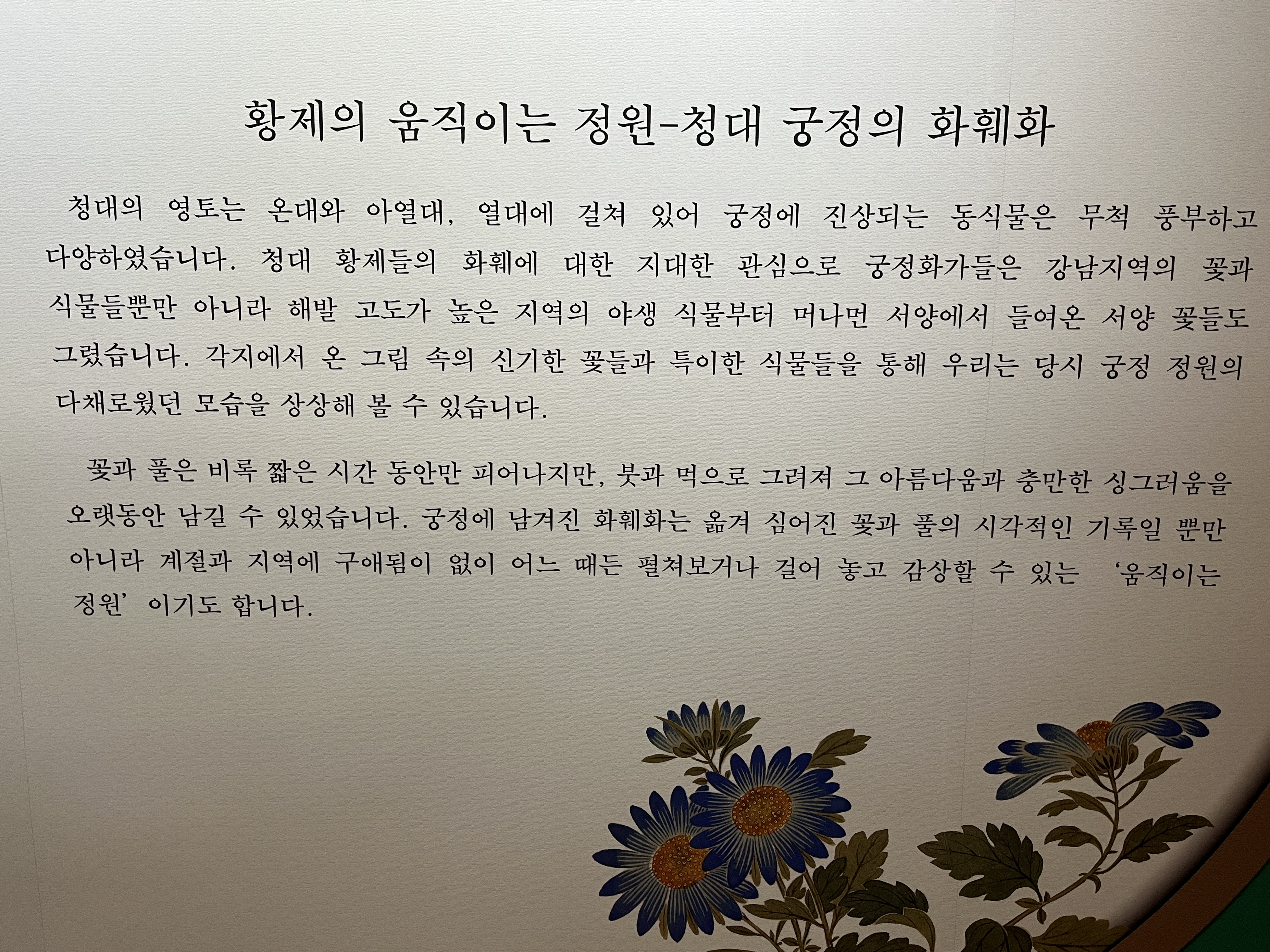 이후 전시된 게 바로 이 서화특별전, '황제의 이동정원'인데요. 여기에서도 혹시나 하고 눈에 불을 켜고 봤으나 큰 오류가 없었답니다.