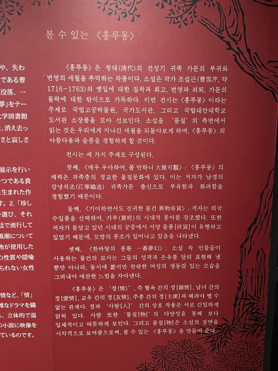 두 번째 전시는 현재 볼 수 있는 홍루몽 특별전이에요.